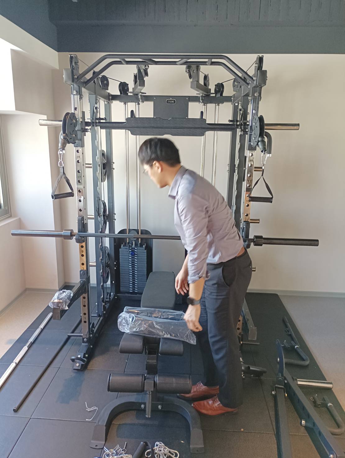 擁有特殊設計,在只需要兩側配重片的狀況下,卻擁有獨立的高低拉系統,並且擁有多樣化的訓練配件,非常適合家中或是工作室1VS1做訓練使用。