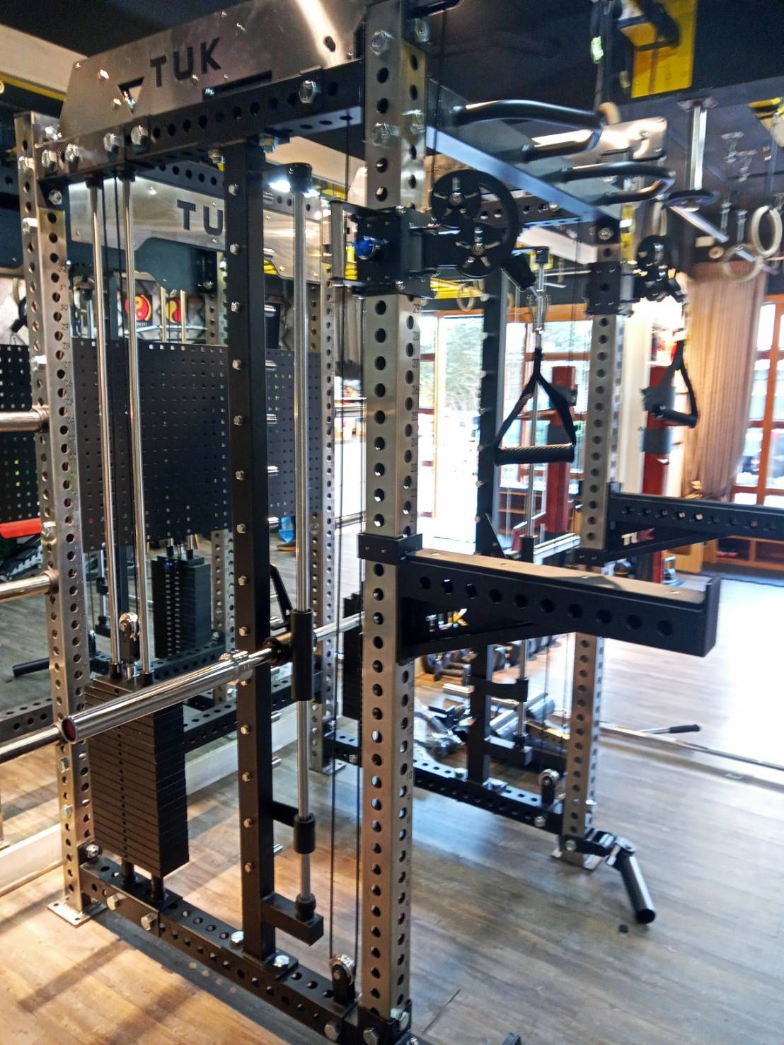 TUK元老級多功能框架,帶有70X50及3mm的管粗及厚度,搭配各式配件,有豐富訓練操作功能,不論是家用及商用都非常適合,在台灣已經銷售超過500台。