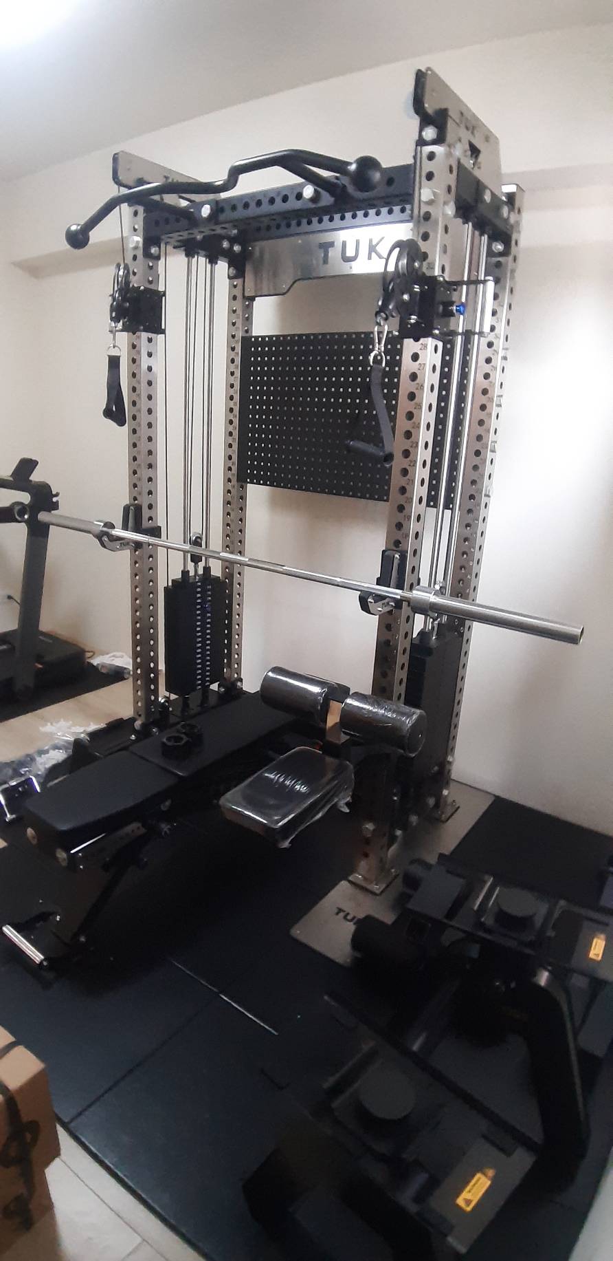 TUK元老級多功能框架,帶有70X50及3mm的管粗及厚度,搭配各式配件,有豐富訓練操作功能,不論是家用及商用都非常適合,在台灣已經銷售超過500台。