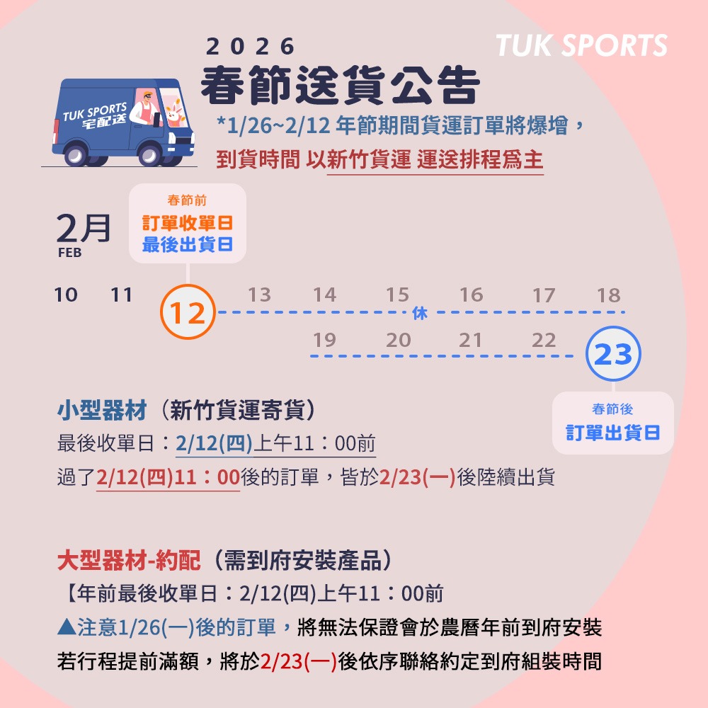 *1/26~2/12 年節期間貨運訂單將爆增,到貨時間以新竹貨運運送排程為主
