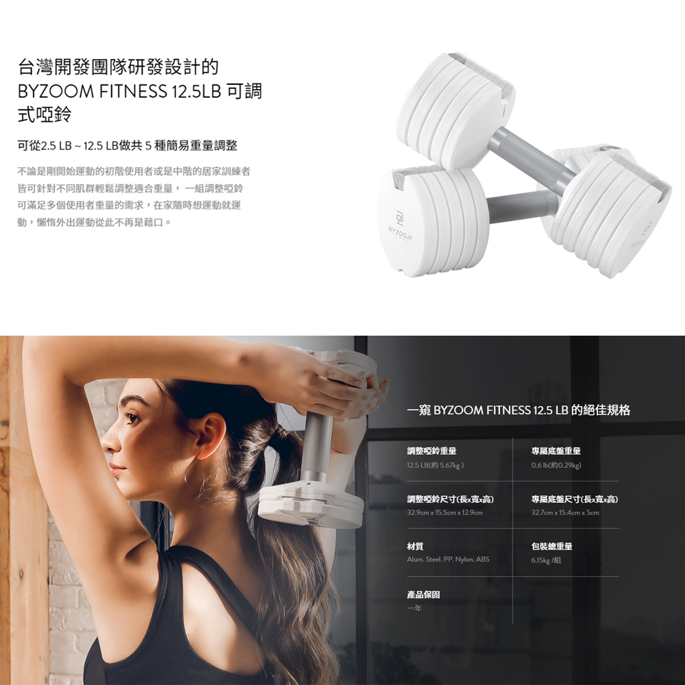 - Byzoom Fitness 可調式啞鈴 12.5LB 5段重量秒速調整-白 x1