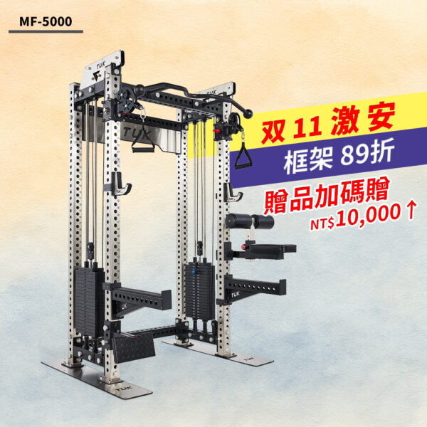 MF5000系列商品分為三款型式:全框深蹲架/小飛鳥深蹲架/史密斯飛鳥深蹲架。