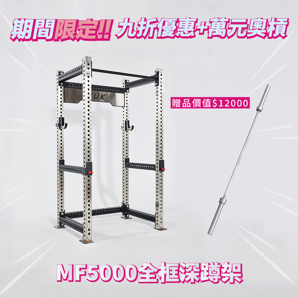 MF5000系列商品分為三款型式:全框深蹲架/小飛鳥深蹲架/史密斯飛鳥深蹲架。