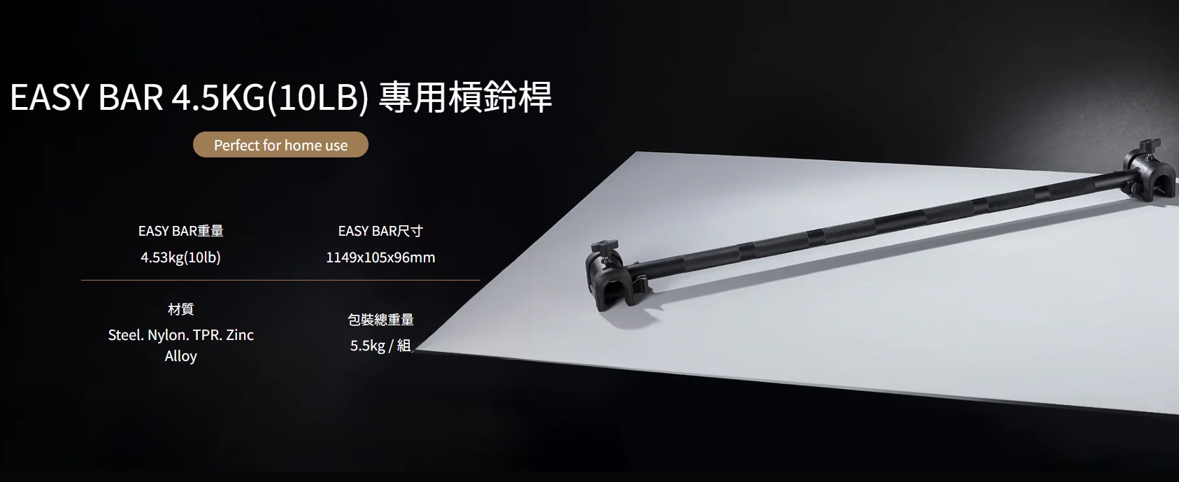 Pure Series Easy Bar 4.5KG(10LB) 專用槓鈴桿(黑)