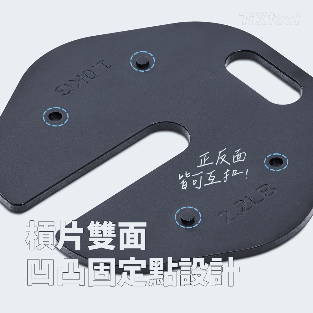 - 1公斤鋼片靈活配置:讓重量計算直覺化,更換輕便不費力,隨心掌控每一組訓練負荷。