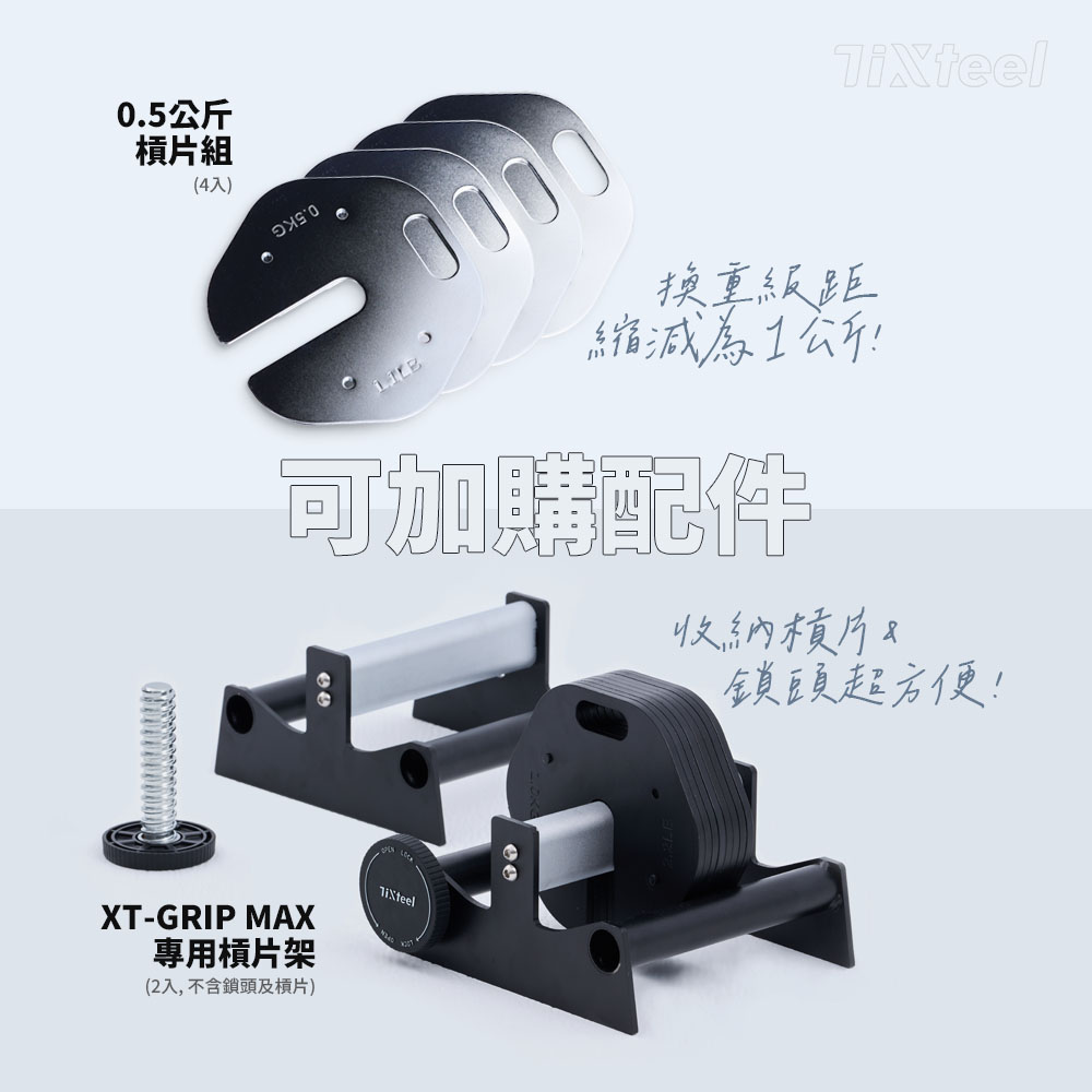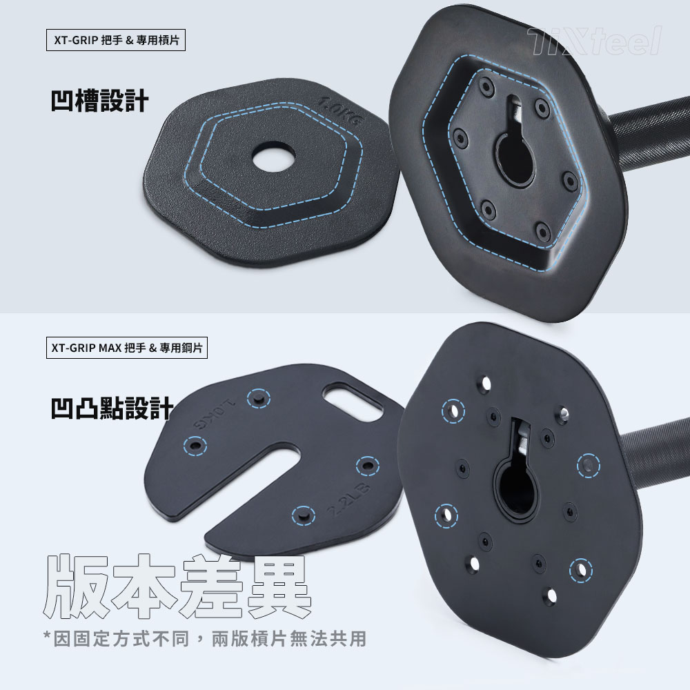 【注意】XT-GRIP MAX系列與XT-GRIP系列因為結構設計緣故,啞鈴把手與槓片皆無法共通使用。