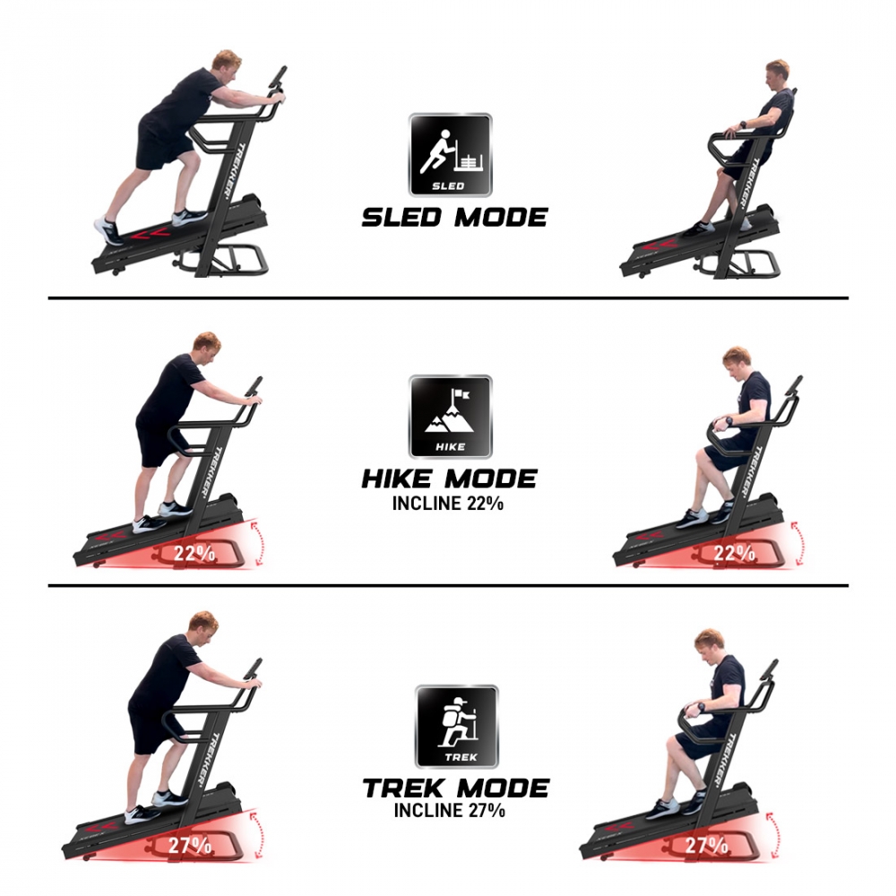 Trekker 4000 的跑帶由使用者的力量與速度驅動,無需外接電源。其高傾斜設計提供更高強度的訓練,讓使用者在較短時間內燃燒更多卡路里。